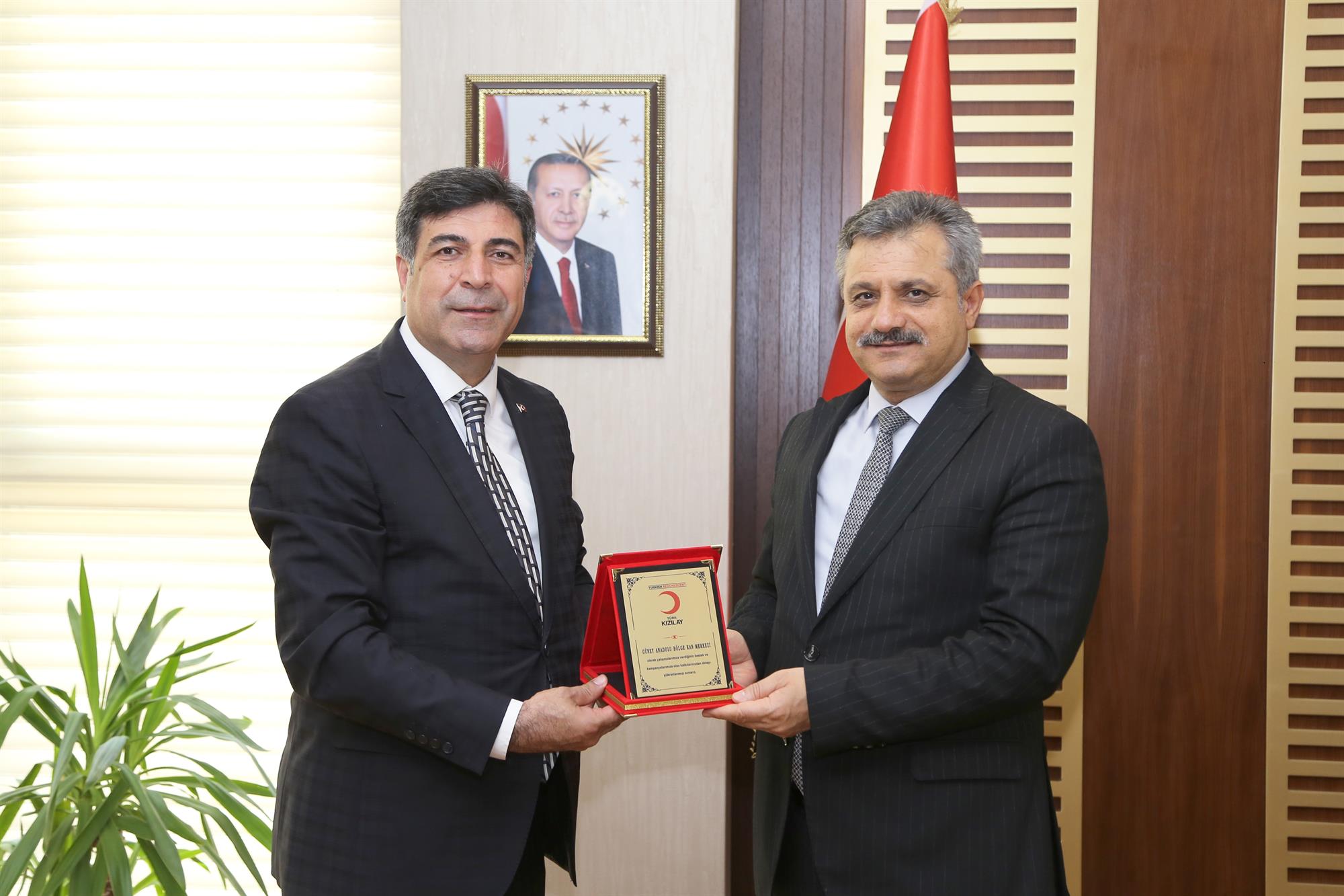 beraberindekilerin ziyaretinden ve plaket için duyduğu memnuniyeti dile