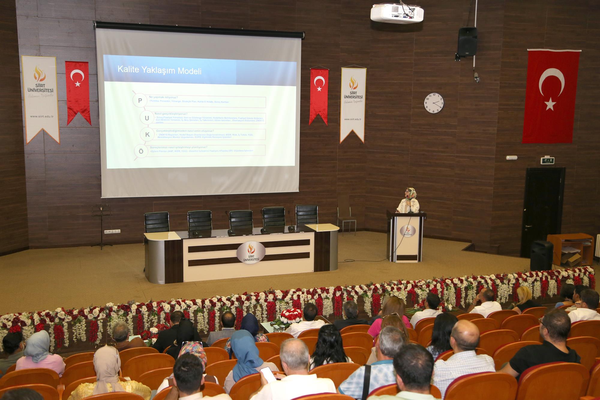 Konferans Salonu’nda üniversitemiz üst yönetimi, kalite kurul üyeleri ve birim
